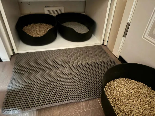 This mat has been fantastic. At first, I wasn't sure if I needed another litter mat, but boy, am I glad I got it! It seriously cuts down on the mess around my litter boxes. Plus, no more cleaning litter off my floors everyday. Just lift, shake and done! Love that it's eco-friendly too. 😊