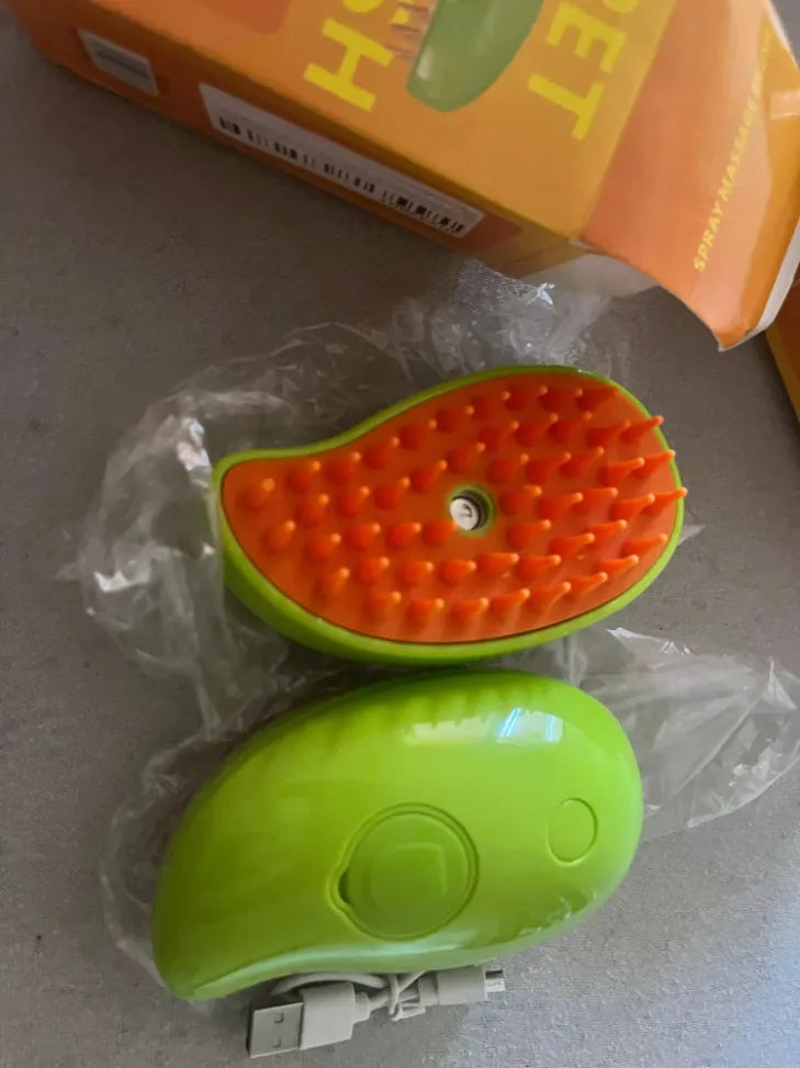 I bought this because my two cats were shedding all over the house. It works wonders! The spray keeps their coats looking shiny and hydrated, and they actually enjoy the massage part, which was a surprise. It's also much quieter than other tools I've tried, so no more freaked out kitties. The one-click spray is convenient and easy to use, making grooming a breeze. My only regret is not discovering it sooner, highly recommend this to any pet owner struggling with shedding!
