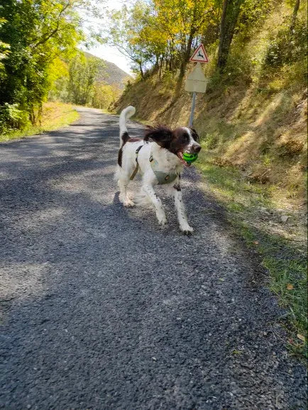 It emits low sounds while moving. Most dogs find this stimulating, but noise-sensitive pups might need monitoring initially.